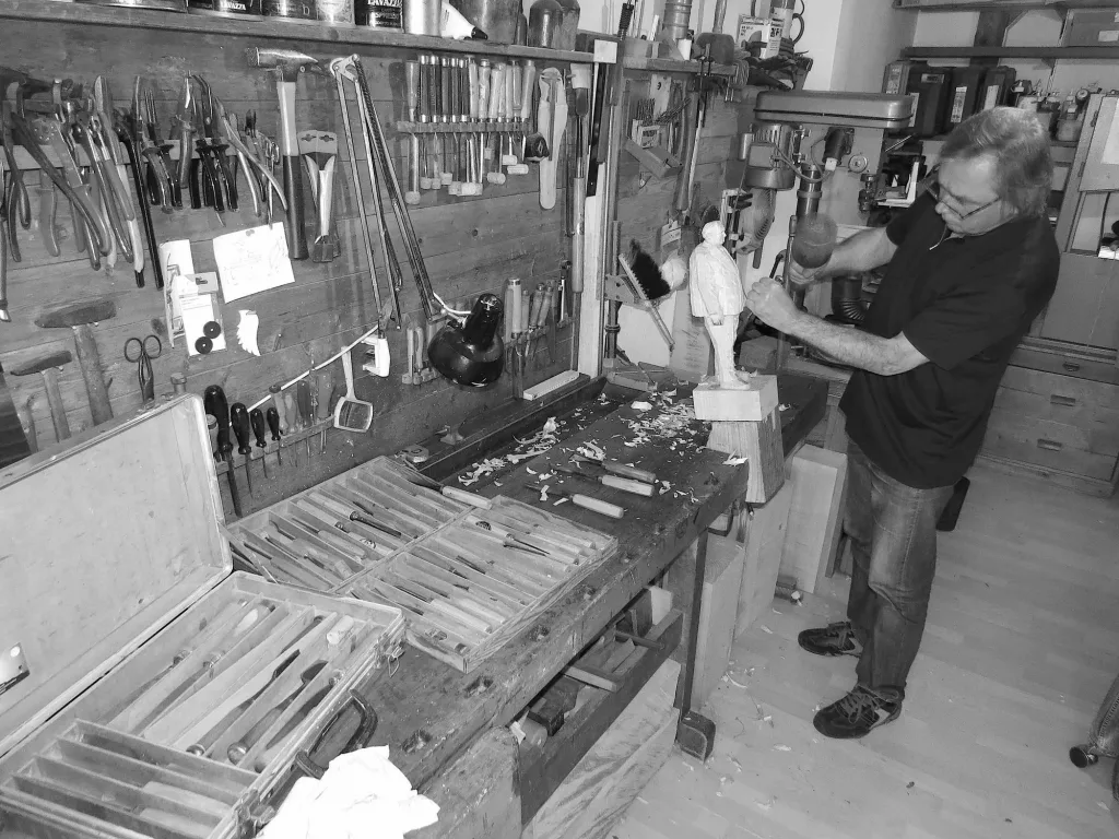Später, in den 90er Jahren, widmete ich mich der Holzbildhauerei. Das Schnitzen und Experimentieren mit der Kettensäge faszinierte mich. Inspiriert von Natur und Sprache entstanden Skulpturen aus heimischen Hölzern wie Pappel, Eiche oder Linde.